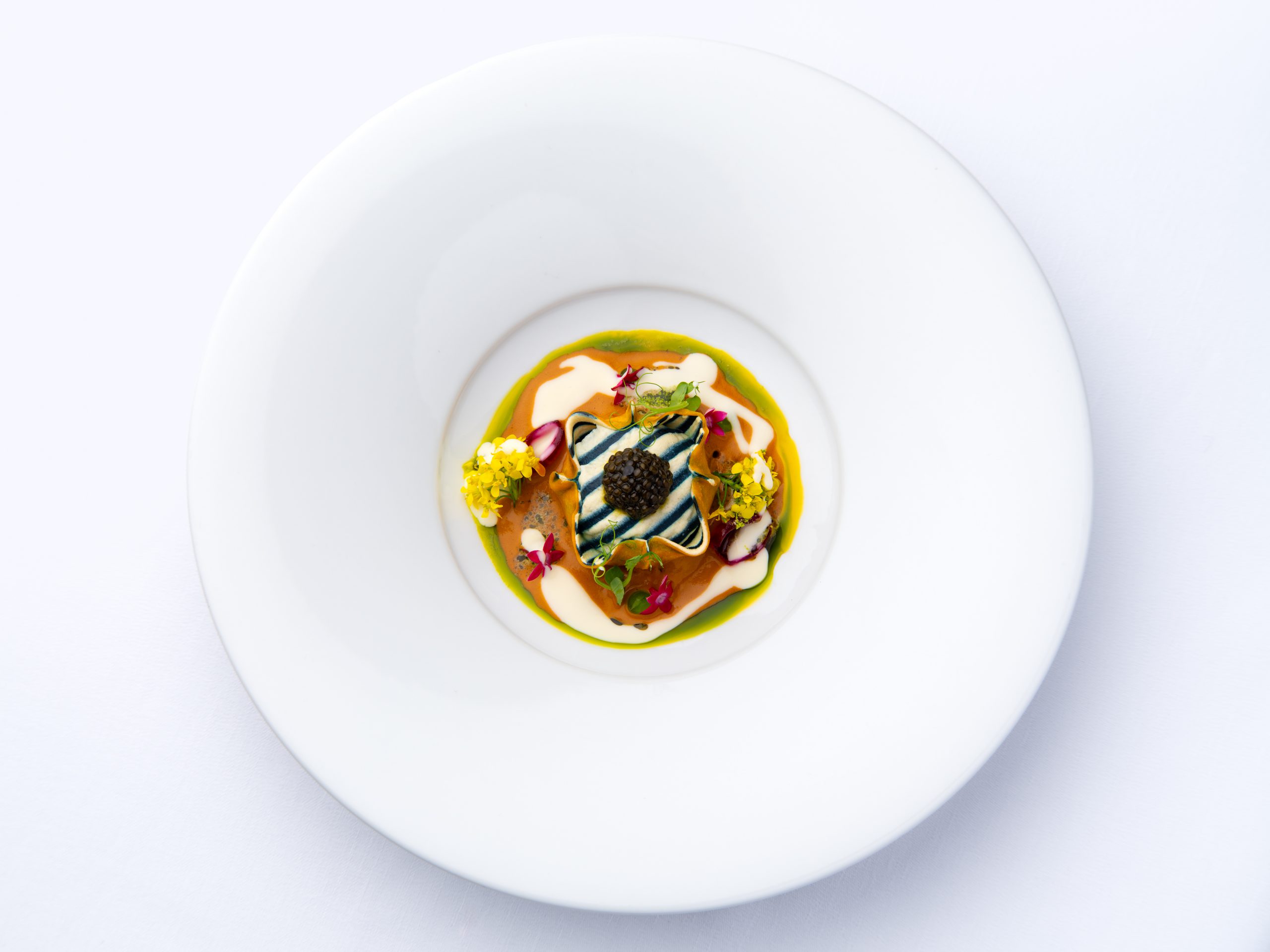 Take a Mediterranean voyage without moving from your seat, and experience flavors from Mykonos, Nice, Rome, Barcelona, Tunis and Beirut, all imaginatively interpreted. For the full taste experience, make sure to add our sommeliers’ recommended pairings.